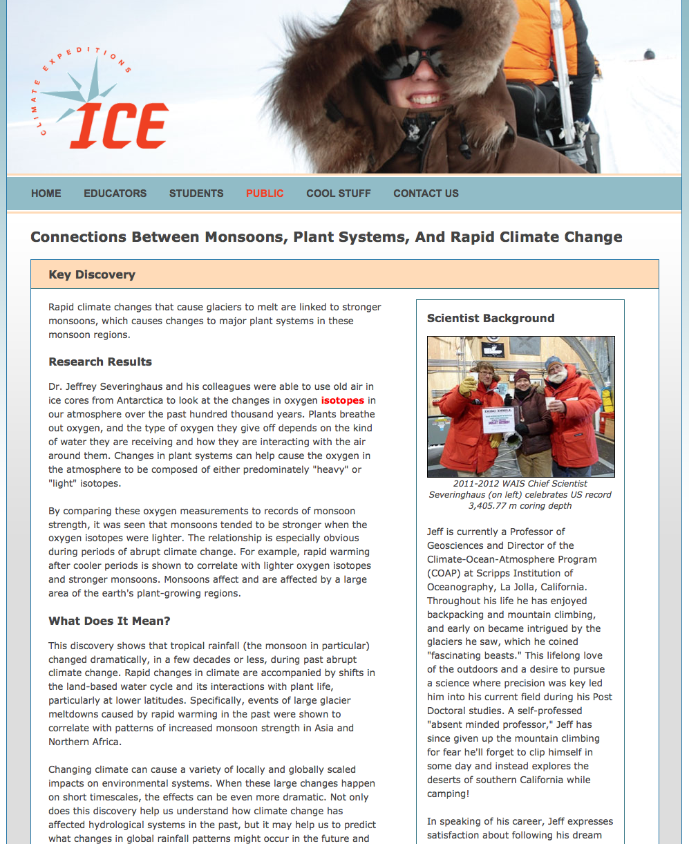 Showcase your research through the "In the News" section of IDPO's Climate Expeditions web site. To make ice core discoveries more readily available to the public, your peer-reviewed research paper will be distilled into key points summarizing its importance. Please check the examples at: