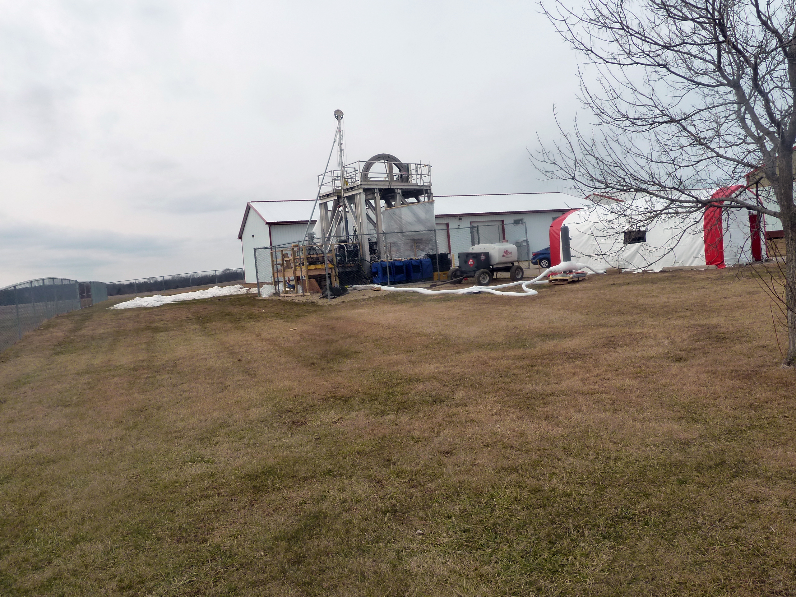 During the Second Quarter, IDDO initiated full-scale system testing of the Agile Sub-Ice Geological (ASIG) Drill outside of Madison, Wisconsin on the UW Physical Sciences Lab (PSL) campus. IDDO engineers, a contract driller and a trainer from the rig vendor, Multi-Power Products, LLC, were able to test a variety of operations, per the Test Plan drafted by IDDO Project Manager Chris Gibson, including the coring of ice, concrete, solid granite and mixed media. The team was also able to tune the rig, refine fuel and drilling fluid consumption rates, determine the expected operational parameters of the system, such as penetration rates, and identify and refine the spare parts list. The rig performed reliably and is expected to meet or surpass all related science requirements. IDDO hosted several visitors to the test site on February 26, 2016, including Bill Eustes, Blaise Stephanus and Mark Twickler from IDPO, as well as PI John Stone, as the drill system will be used first for his upcoming project in 2016-2017 near Pirrit Hills in Antarctica. Leah Street from ASC, in Madison on other business, was also able to visit the site, as well as several other IDDO personnel. Late in the quarter, IDDO engineers quickly transitioned to system modifications, repairs and upgrades, in anticipation of shipping the system to Antarctica in September.