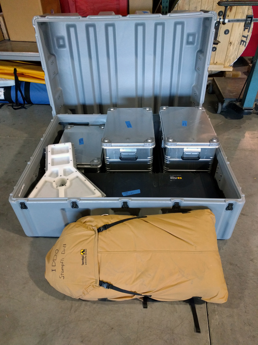 The Stampfli Drill, a commercially-available shallow ice coring system purchased and received by IDDO in early 2017, is now ready for issue to investigators. Following a test of the system at Summit Station, Greenland, IDDO engineers made slight modifications to the commercial kit to include a more robust and replaceable steel cutter design and implemented a more efficient and lightweight packing strategy for remote deployments utilizing small aircraft and manpower for cargo movements. A tent is also available for use with the system. Science teams may operate the system on their own, with no drilling support from IDDO required, but are encouraged and welcome to visit IDDO in Madison, WI for pre-deployment hands-on familiarization training with the system if desired.