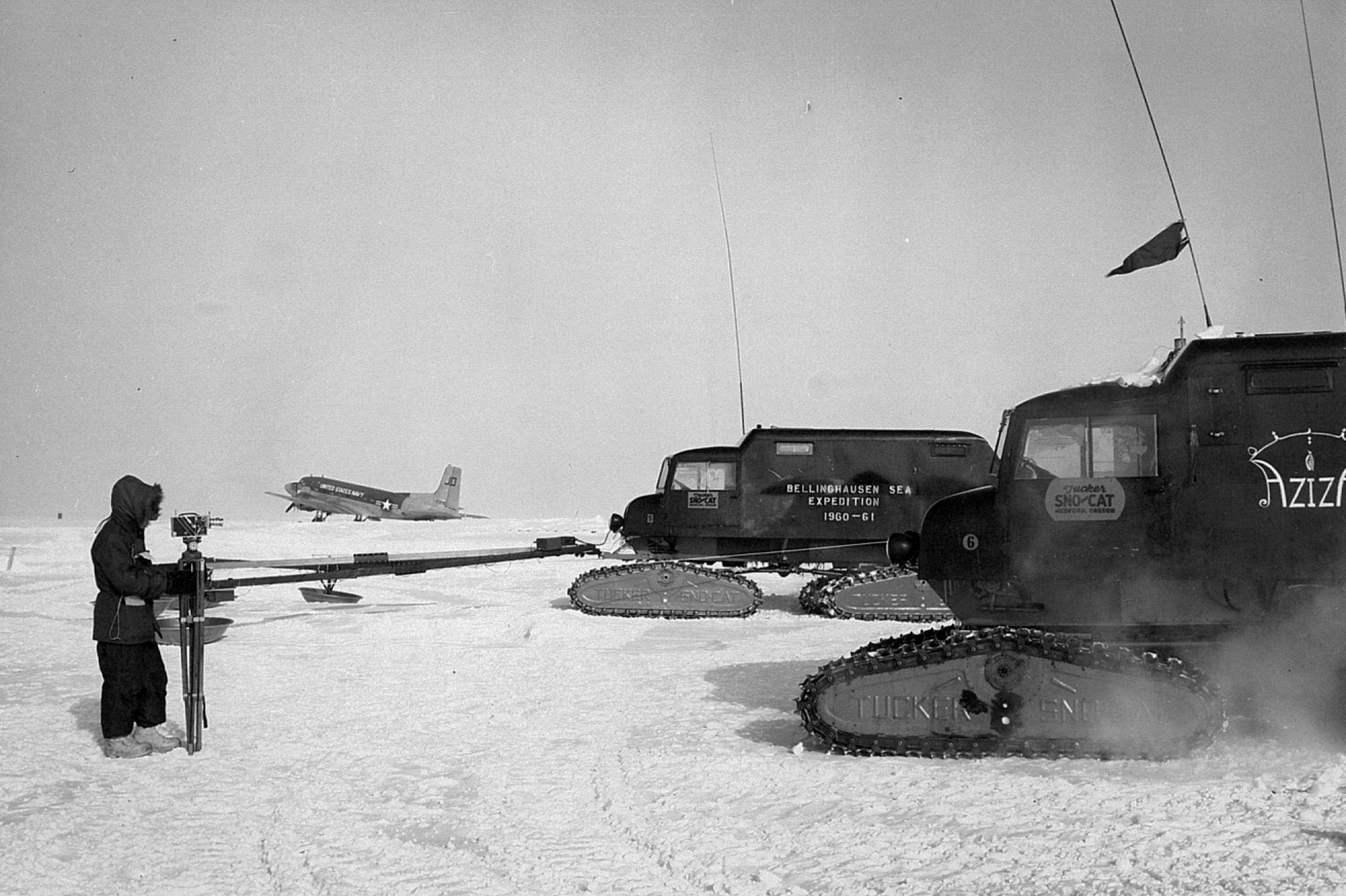 Beginning in 1957, Bentley spent 25 consecutive months on the ice in Antarctica, at a time when scientists from around the world were converging on the continent as part of the International Geophysical Year. During that time, he served as the seismologist on a five-person expedition that motored in tracked vehicles called Tucker Sno-Cats from Little America (a U.S. base near the edge of the Ross Ice Shelf) to Byrd Station in interior West Antarctica on a nearly 700-mile traverse. After wintering over at Byrd Station, Bentley and his colleagues continued their explorations of the continent for a total of almost 3,000 miles of traversing the then almost completely unexplored Antarctic.