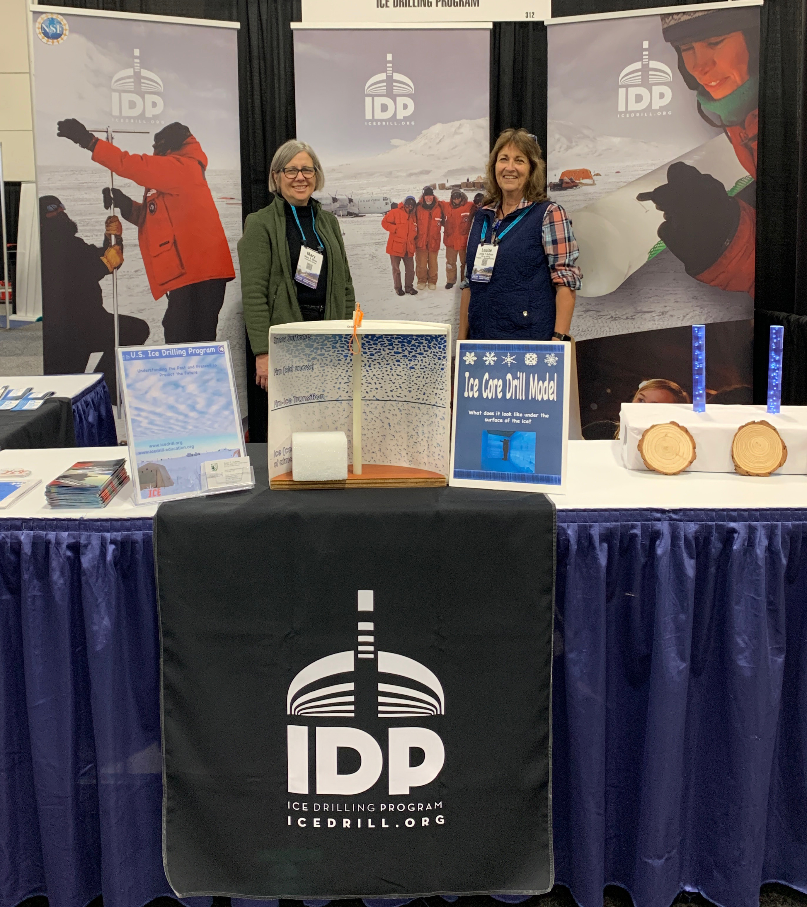 For the first time, IDP sponsored a booth at AGU to reach more people than was possible at past Town Hall meetings. The booth allowed us to spend time talking with people interested in ice science and several surprise audiences were well represented besides scientists: educators wanting ideas for teaching about ice core research and climate change; undergraduate and graduate students interested in learning about research possibilities and careers; and early career scientists exploring options. It was a dynamic, exhilarating (and exhausting!) week.