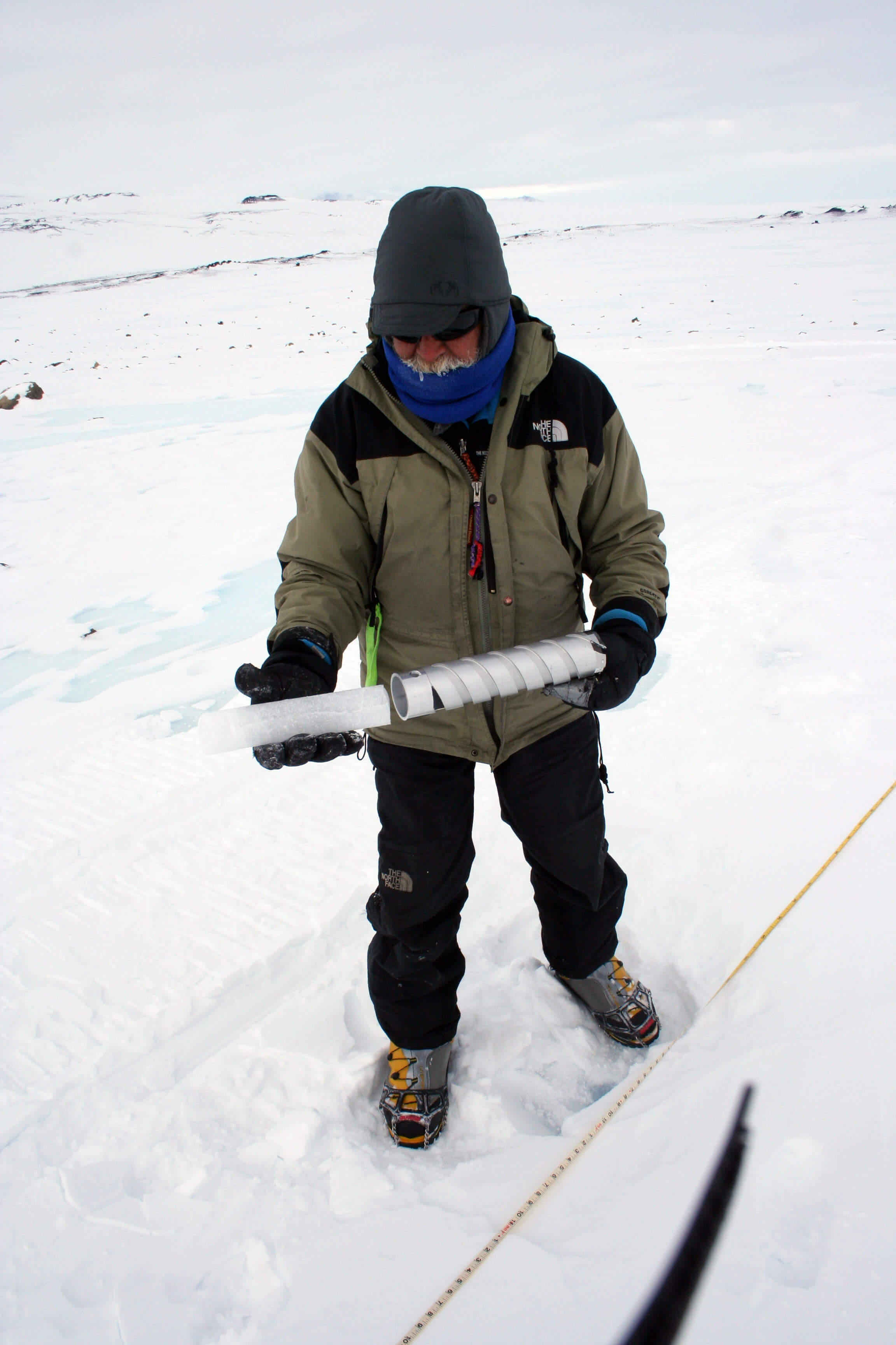 The T-940-M (McMurdo Shear Zone) and T-941-M (Leverett Glacier) technical projects (PI Renee Melendy; Field Lead Zoe Courville) used a hand auger to drill short cores (1-4 meters depth) to determine snow density along the South Pole Traverse route, for examining snow bridge properties over crevasses along the Leverett Glacier to update crevasse crossing criteria in the region, to retrieve cores to shallow blue ice layers to validate the depths of ground penetrating radar profiles, to compare snow properties along the South Pole Traverse route, both on and off the route, and to determine the impact of snow compaction from tractor travel over the route.