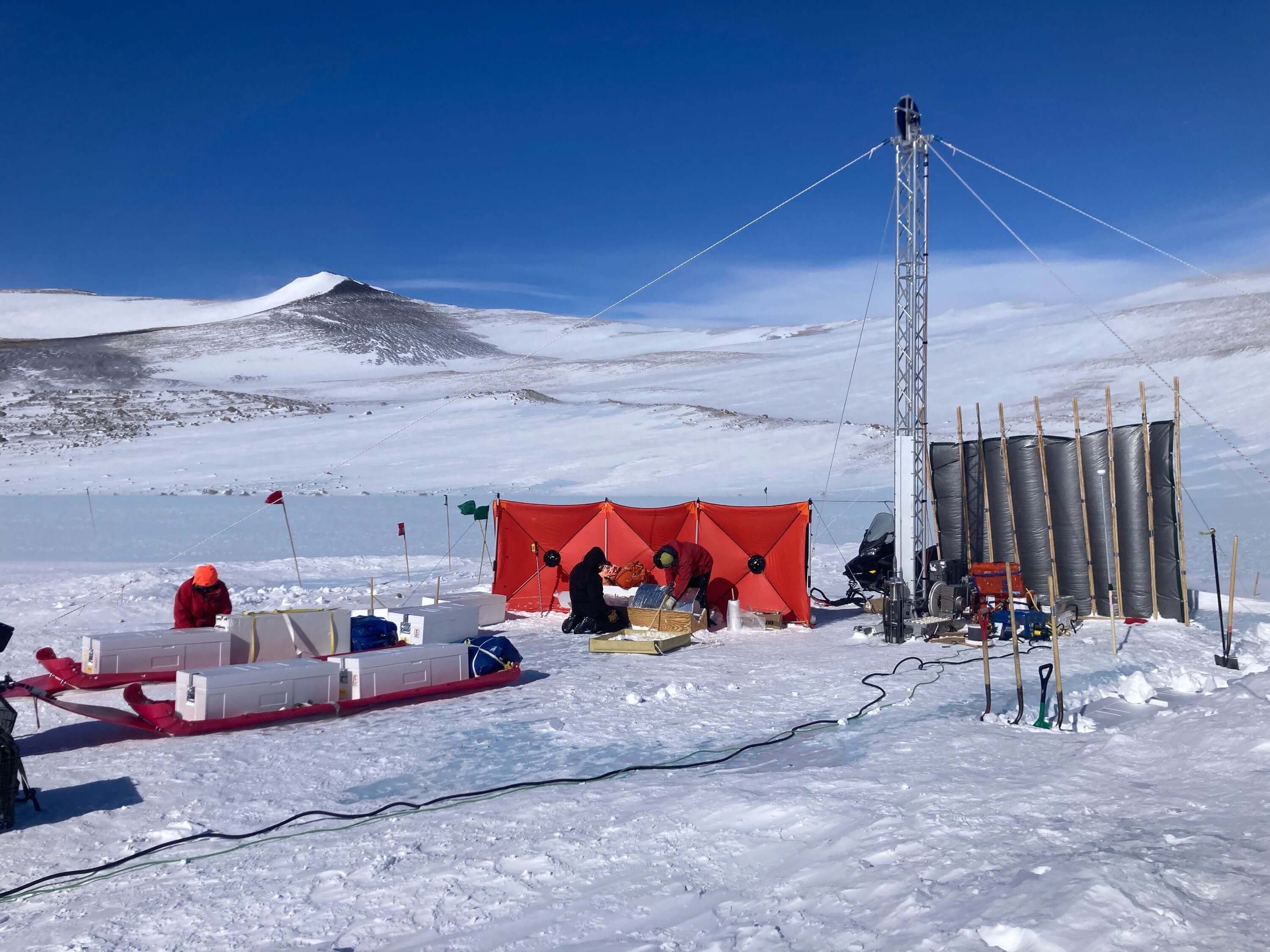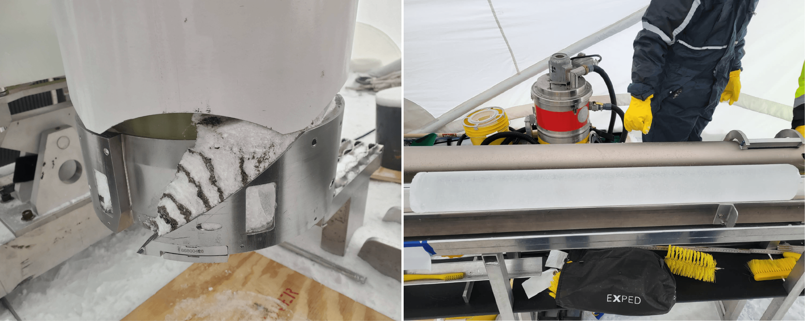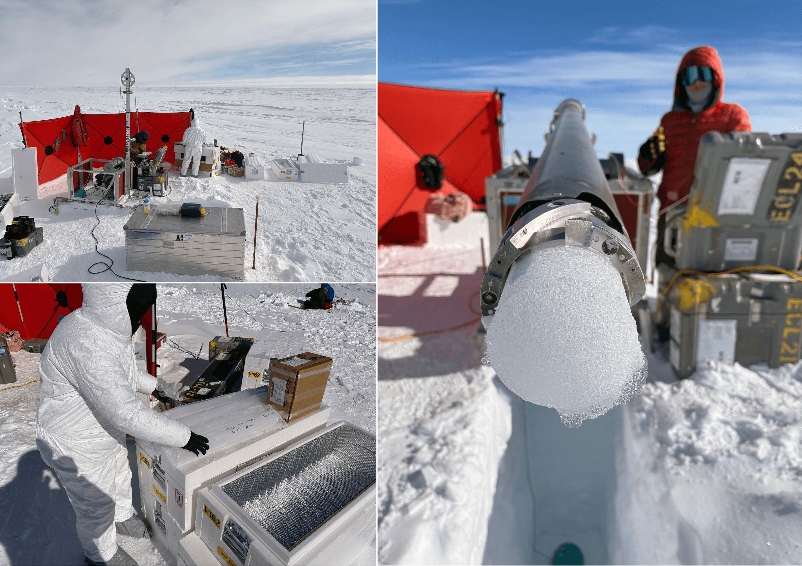 At Taylor Dome in East Antarctica, IDP engineers/drillers Forest Harmon and Elliot Moravec spent 42 days onsite, completing 28 drilling-related workdays with the Eclipse Drill for the I-162-M Collaborative Research: A New Approach to Firn Evolution using the Taylor Dome Natural Laboratory project (PI Dr. Kaitlin Keegan; Field Team Lead Dr. Zoe Courville). After completing the fieldwork at Allan Hills, IDP driller Elizabeth Morton traveled to Taylor Dome to provide additional drilling and science support. All primary drilling objectives were achieved with 583 meters drilled across four drilling sites, averaging 20.8 meters drilled per day. The Eclipse Drill provided excellent core quality and was easy to maneuver between drill sites. The science team also used an IDDO 3” Hand Auger and the new Sidewinder to core 95 meters across four boreholes. The new Sidewinder was very successful, improving both coring efficiency and operator safety.