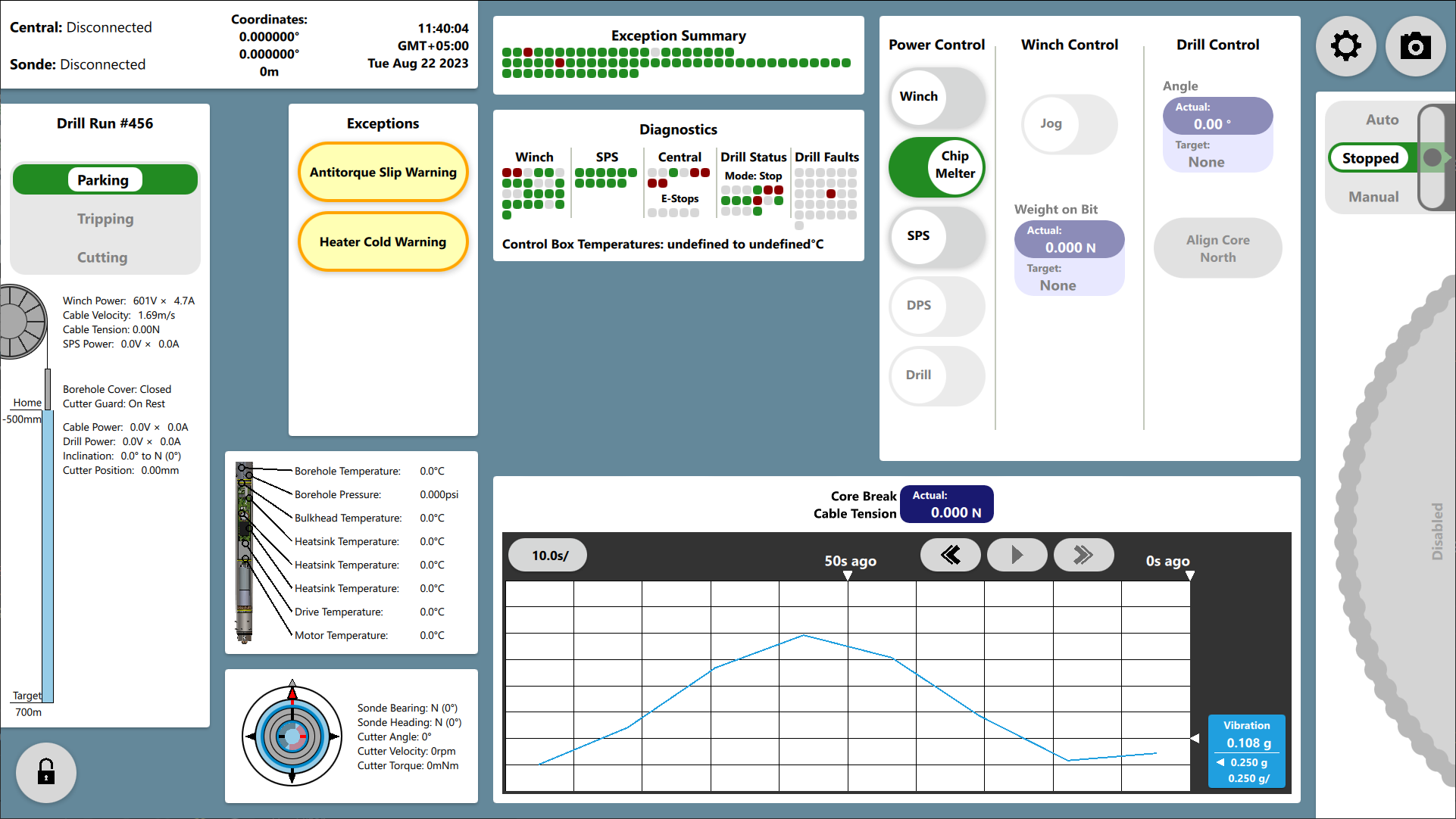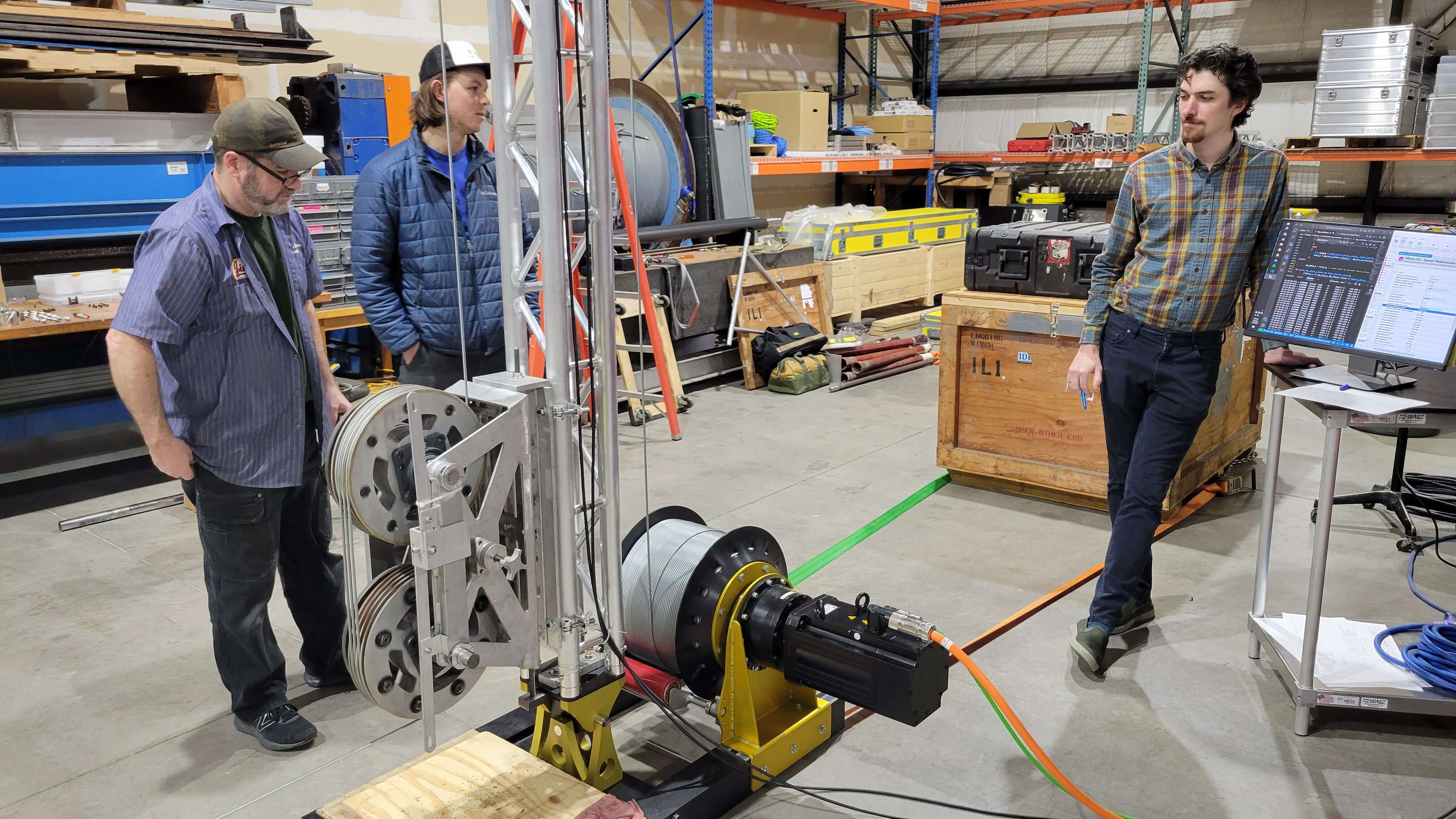 Over the past ten months, IDP electrical and mechanical engineers have worked hard to bring the detailed designs for the 700 Drill to life. Equipment designs were finalized, engineering drawings completed, components ordered, and assembly begun. The winch and tower were fully assembled in Madison, and the electronics hardware and software also made excellent progress. Control system mechanical and electrical features were finalized, and work was initiated on final auxiliary systems such as core handling and chips processing equipment. IDP anticipates the drill will be ready for issue by March 2024.