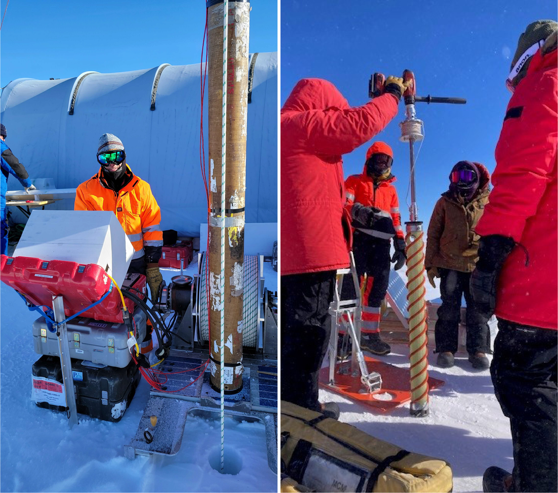 (1) The Collaborative Research: Using New Ice Cores from Dome C to Test the Assumption of a Constant Galactic Cosmic Ray Flux and Improve Understanding of the Holocene Methane Budget project (PI Vas Petrenko, NSF award 2146131) will obtain new ice cores in Antarctica in collaboration with the French Polar Institute. The project aims to improve our understanding of the history of cosmic rays originating from outside our solar system. Records of atmospherically produced cosmogenic nuclides have been used to reconstruct past solar activity and solar irradiance. Cosmogenic nuclides produced in surface rock are widely used in studies of past ice dynamics and extent. All these studies generally assume that the galactic cosmic ray flux at Earth is constant in time, but this is uncertain by 30% or more. Using the 4-Inch Drill, the researchers will drill two ~300-meter-long ice cores from the Dome C region of Antarctica. This project will use measurements of in situ cosmogenic carbon-14 of carbon monoxide (14CO) in the newly drilled ice cores to test the assumption of constant galactic cosmic ray flux. The researchers will also measure carbon-14 of methane (14CH4) to help improve our understanding of the Holocene methane budget.