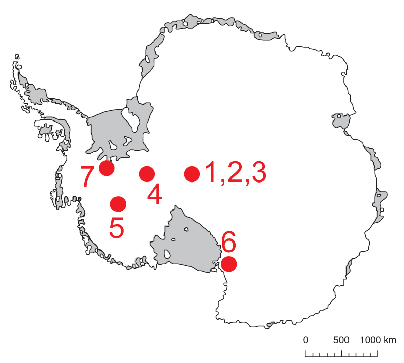 (7) The Collaborative Research: Site Survey for Subglacial Bedrock Exposure Dating at the Margin of the Wilkes Basin in Northern Victoria Land project (PI Greg Balco; NSF award 1744844; I-158-M) aims to establish, through direct geological evidence, whether complete deglaciation of East Antarctic marine basins took place during past warm-climate periods. The researchers will assess the feasibility of achieving this goal using cosmogenic-nuclide measurements on bedrock buried under the ice sheet. During the single field season (2023-24) reconnaissance and site survey, the researchers will conduct snowmobile-towed radar surveys, geologic mapping, and rock/sediment sampling at several sites in the western Outback Nunatacks region of northern Victoria Land. The researchers will also have a Kovacs Hand Auger with them.