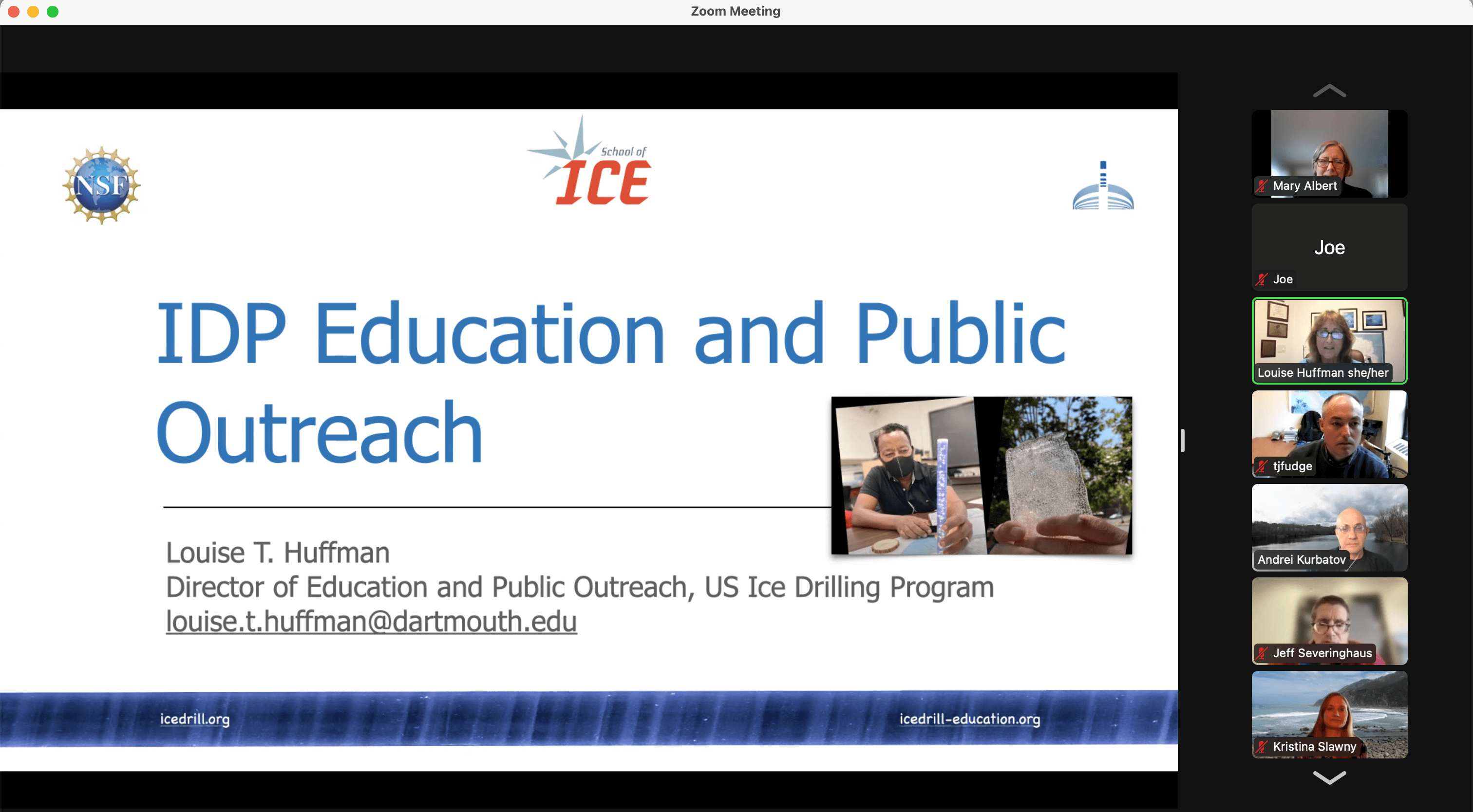 Scientists who seek to include IDP education and outreach activities associated with U.S. ice coring or drilling science projects should contact Louise Huffman at Louise.T.Huffman@Dartmouth.edu during their proposal preparation stage.