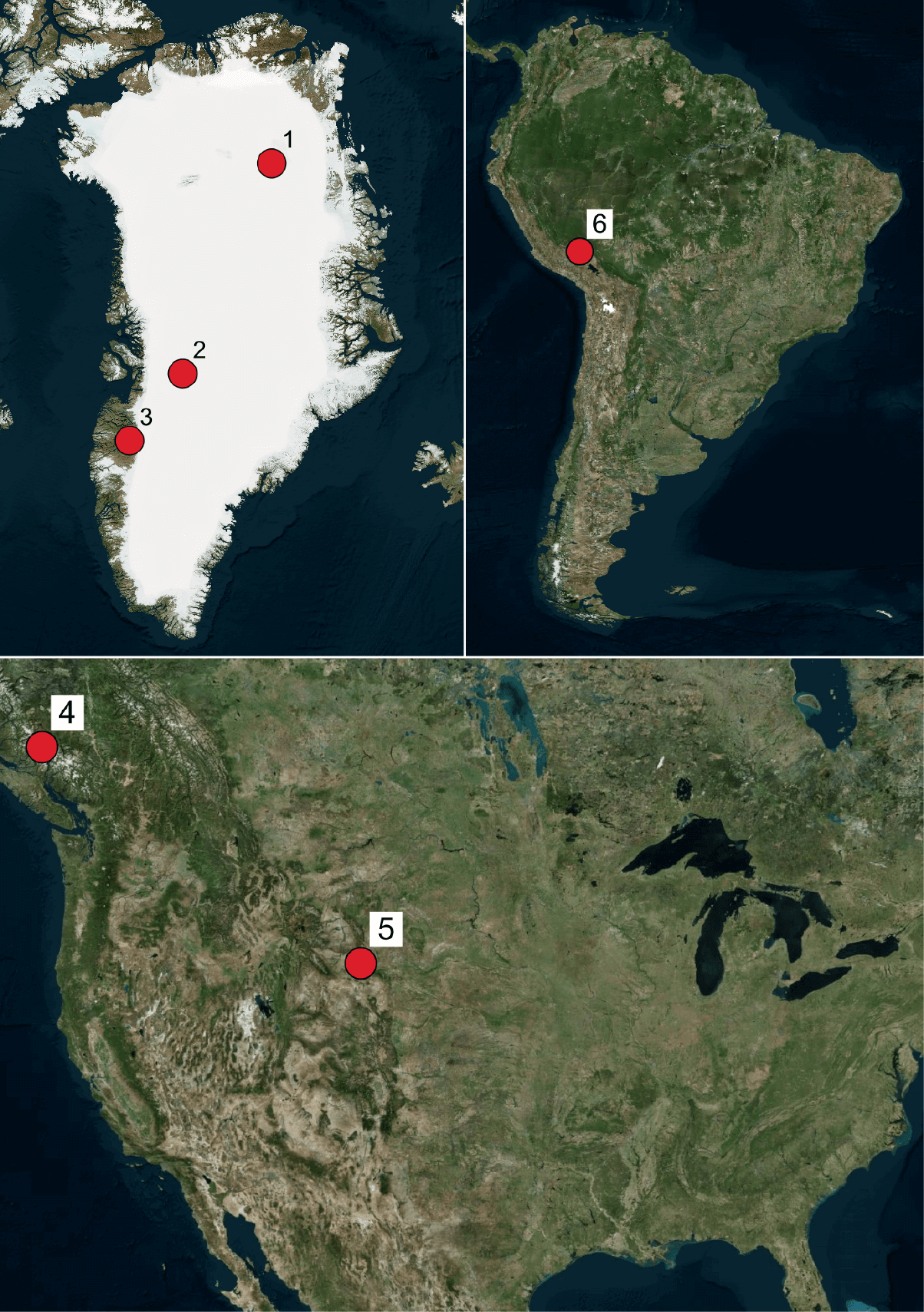 (6) The Reconstructing Ancient Human and Ecosystem Responses to Holocene Climate Conditions project (PIs Dave McWethy and Joseph McConnell; NSF award 1832486) is reconstructing Holocene climatic conditions to better understand human adaptation and response to past environmental variability. The researchers are using the assemblages of plant, animal, geologic, and archaeological material emerging from melting ice-patches in higher-elevation areas to learn about past environmental conditions and human use of alpine resources. The investigators are using an array of archaeological artifacts, ancient wood, and environmental and climatic proxies (e.g., oxygen isotopes, black carbon, continental dust, charcoal, and pollen) from ice cores collected from Northern Rocky Mountain ice-patches to better understand human use of alpine environments during periods of dramatic environmental change. The investigators used the Chipmunk Drill to collect the ice cores.