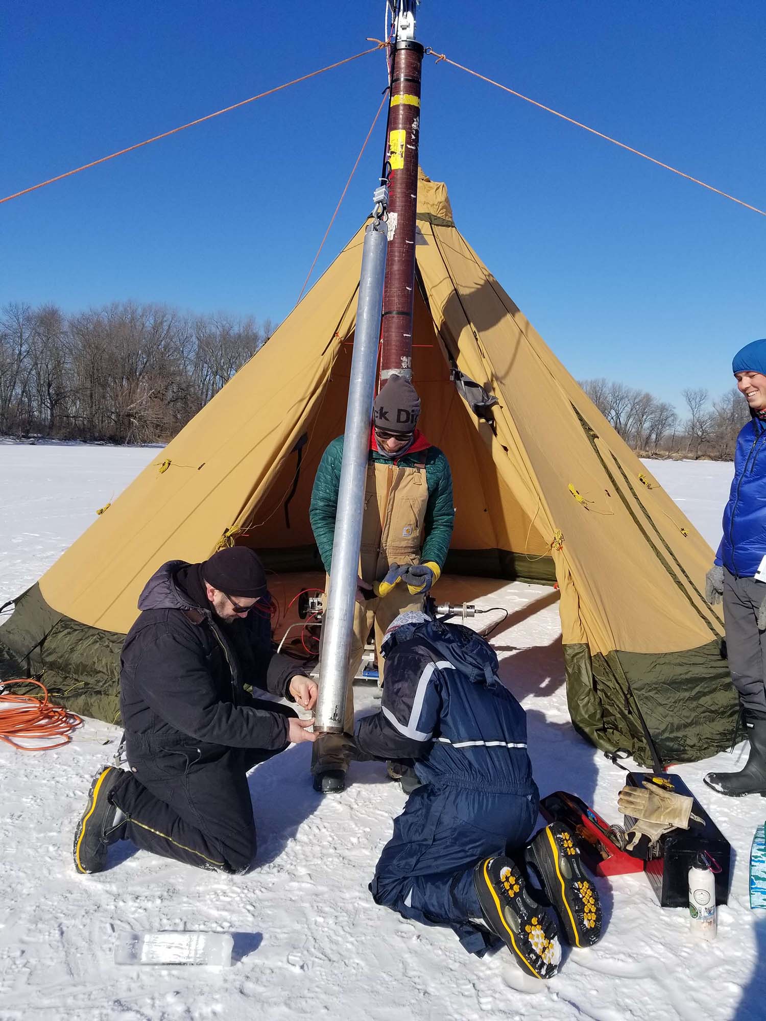 (1) The SG: The Ecosystem Ecology of Lake Ice Loss in North-Temperate Lakes project (PI Dugan; NSF award 1856224) advances the growing field of winter limnology by using long-term data collected on northern lakes in Wisconsin in conjunction with a snow-removal experiment to look at under-ice algae and the implications for ice-loss on spring algae blooms. Using an IDDO hand auger, the researchers will collect lake ice cores through an ice thickness of up to one meter to study the biogeochemistry and habitat of lake ice.