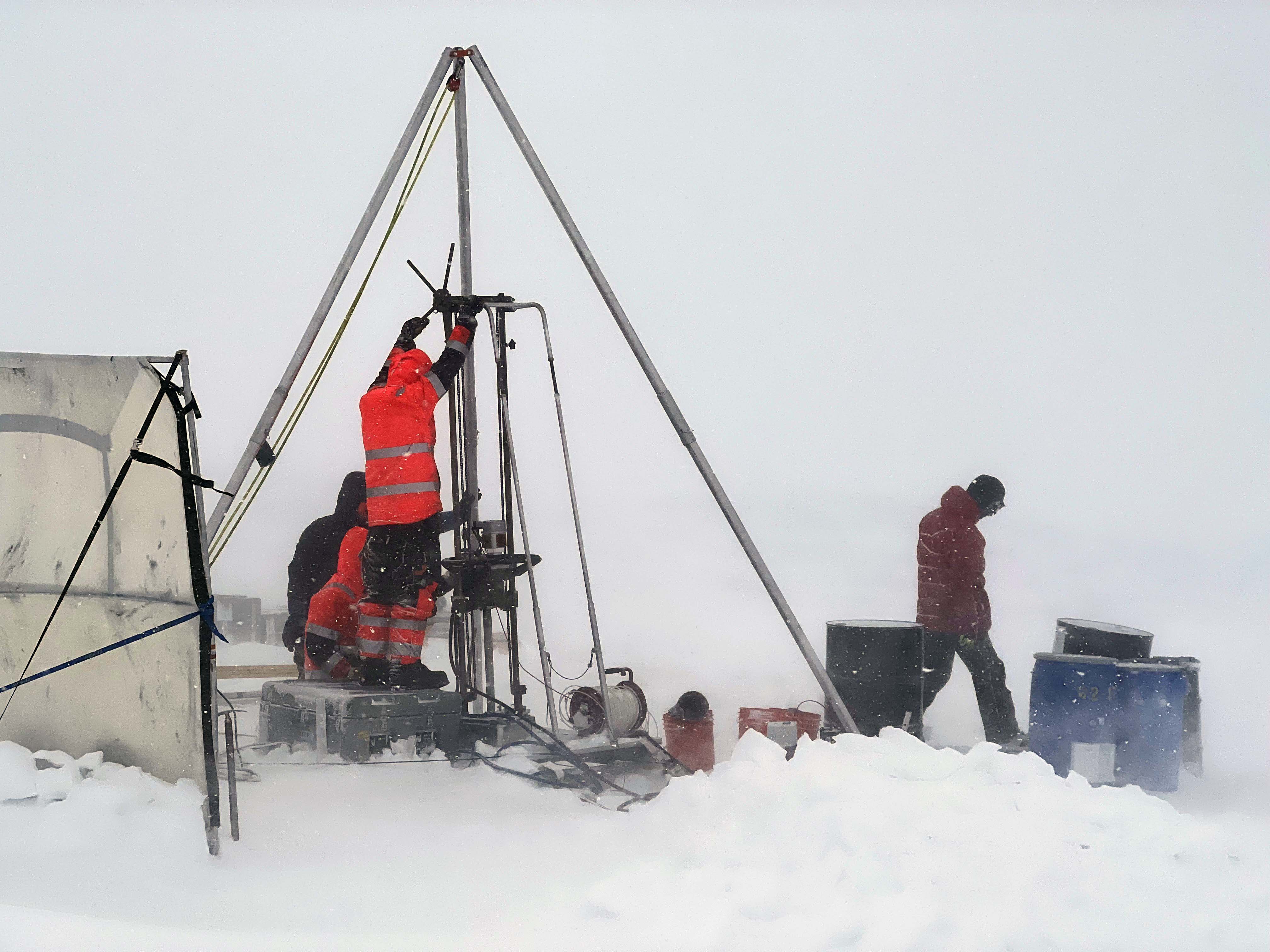 (2) The Collaborative Research: EAGER: Dating Glacier Retreat and Readvance near Mount Waesche, West Antarctica project (PI Seth Campbell, NSF award 2210092) aims to obtain glaciological and geological data on the past extent of the West Antarctic Ice Sheet. A key location for determining this ice extent is Mount Waesche, a volcano that rises above the ice surface near the dome of the ice sheet. Previous field expeditions to the Mt. Waesche volcano in Marie Byrd Land, Antarctica, used ground-penetrating radar to map the area’s sub-ice topography and internal glacial layering. These radar profiles revealed discontinuities within the ice that represent lower ice levels that may have occurred in the past. This project aims to enhance the team’s rock core drilling program at Mount Waesche by dating the discontinuities in the ice. Using the Eclipse Drill, the team will collect ice cores from above and below the discontinuities to constrain the ages of the discontinuities. Isotopic and tephra analysis will be used to provide age constraints on the ice cores. The researchers will also use the Chipmunk Drill to collect a series of short cores across vertically oriented ash-bearing ice sequences for subsequent oxygen isotope analysis. These data will be correlated with other, well-dated West Antarctic ice cores to obtain a local chronology and date the discontinuities. This exploratory work aims to provide data that complement the results from subglacial rock cores to constrain surface-elevation change better, including both retreat and readvance, since the last interglacial.