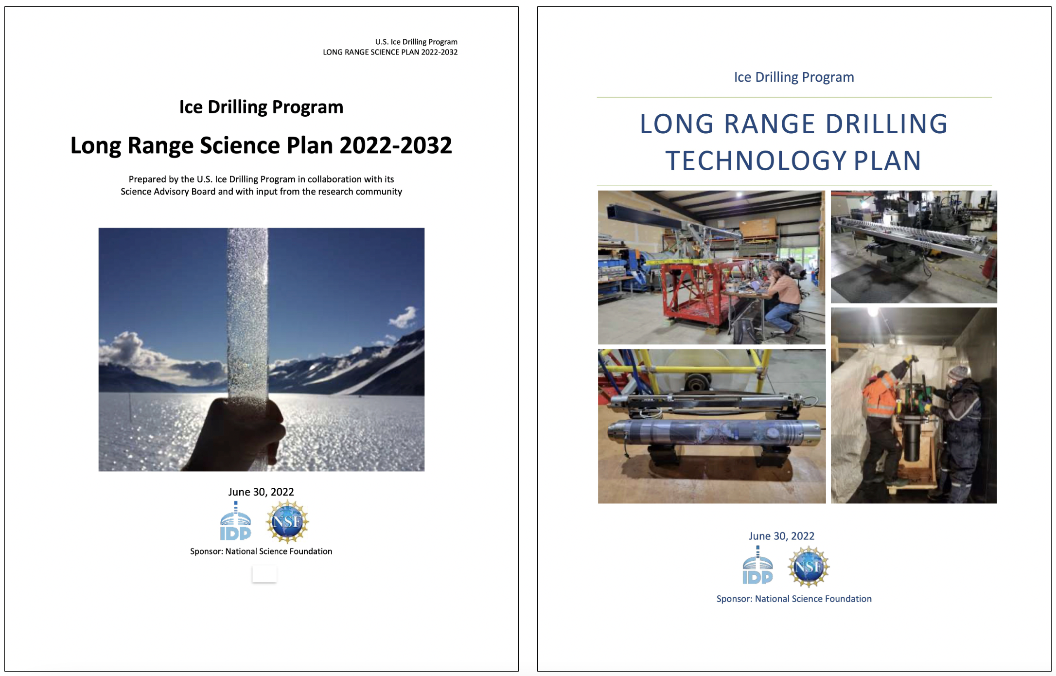 The NSF Ice Drilling Program (IDP), in collaboration with its Science Advisory Board and with input from the research community, updated the Long Range Science Plan. This plan aims to articulate goals and make recommendations for the direction of U.S. ice coring and drilling science across a wide variety of areas of scientific inquiry and to provide recommendations for the development of drilling technology, infrastructure, and logistical support necessary to enable the science. A companion document, the Long Range Drilling Technology Plan, provides details about drills available through IDP. Both plans are revisited and revised as appropriate each spring. The Long Range Science Plan is available at https://icedrill.org/long-range-science-plan. The Long Range Drilling Technology Plan is available at https://icedrill.org/long-range-drilling-technology-plan.